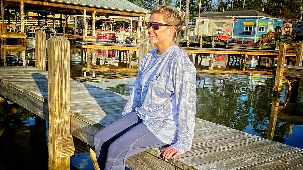 Every now and again, my lovely wife rummages through my shirt and hoodie collection and takes whatever she wants to—it’s like Christmas to her, I reckon. If you’re dating someone or especially married, you know exactly what I’m talking about. I had an Aquaflage Long Sleeve Performance Shirt that I was wearing for a few months and one day, she walks out of the house wearing it while I was hooking up the boat before an evening fishing trip. You have to pick your battles, though… right?