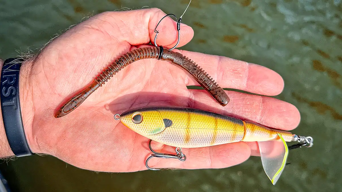 Bass that are relating to bream beds respond really well to topwater baits and wacky rigs. These fish will also eat Texas rigged soft plastics and swim jigs too, as well as vibrating jigs, spinnerbaits, wake baits, and glide baits.
