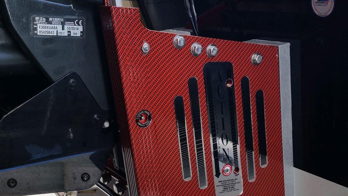 The new process used by Bob’s utilizes water and powder coat and takes a full day to complete. The powder coat is baked on after primer is completed and clear is then placed on the plate. Three different steps with baking each time makes this jackplate both exceptionally cool-looking but is also said to make it wear like iron. U/V protection is added as well.