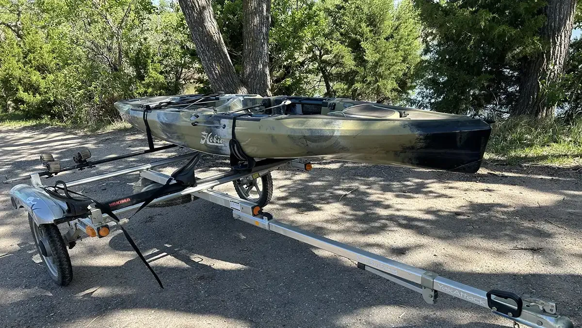 There are a variety of ways to transport a kayak these days. With the advancement of accessories and the size of kayaks used in fishing, a trailer can be a very simple method of launching your kayak from the ramp. Kayak trailers have seen advancements as well with additional storage areas for gear and rods. Some even have lights installed for prepping kayaks before launching into a tournament at first light. Prices can vary from a few hundred to thousands of dollars depending on your needs. Some anglers will fabricate their own trailers modified from jet ski or boat haulers. With so many more options to choose from in the last few years you might ask yourself which is best for your needs? This article will give you the information on the best kayak trailers so you can make an educated decision on a trailer that will host your kayak.