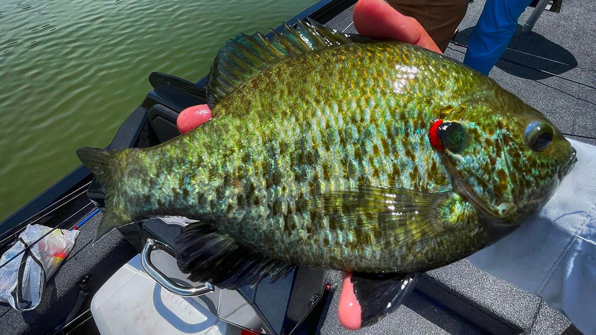 Now, I’m a lot more patient when I feel like I’m in a prime area on a contour, with a piece of cover nearby. I let the fish peck and test and watch my line intently for movement and then I set. That has led me to a lot more red ear.