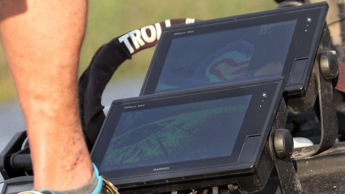 “Then you just have to play with the brightness and contrast to get it right for your eyes. I don’t use it on auto-depth or auto-range either because I want to consistently know what I’m looking at without having to look at the numbers. It’s better to me if it’s not constantly bouncing around. I always set my depth manually to be three or four feet deeper than the water I’m in. If I move shallower or deeper, I just bend over and adjust it a little. I always keep my outward range on 70 feet because I was a baseball pitcher and know exactly what 60 feet, 6 inches looks like.”