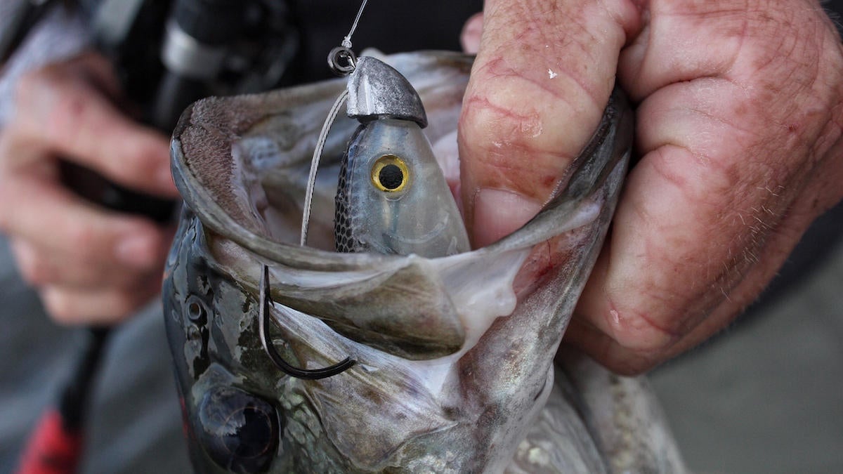 Whenever the swimbaits fail to produce bites, Lane has found a much more finesse approach that offers a more subtle profile and action. This can appeal to lethargic bass when they’re in a neutral state.