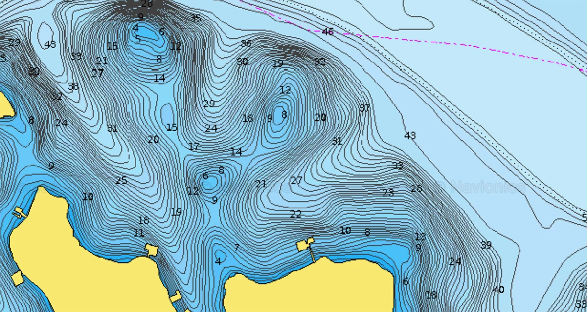 There will be a few small windows throughout the early mornings and late evenings when they’ll be in a full-on feeding frenzy on top of the points but the large majority of time, they’ll be on the sides of these points facing into the current and/or wind. The depth change essentially provides them with a strategic ambush point and they’ll let the current and/or wind wash the small baitfish over the shallow point and will attack them as they wash over.