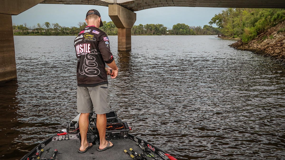 Riprap: Noting that a small stretch of bridge riprap in the creek is easier to dissect than a mile-long causeway, Crews starts with a SPRO Baby Fat John 50, which runs 2 feet and stays in front of the shallower fish.