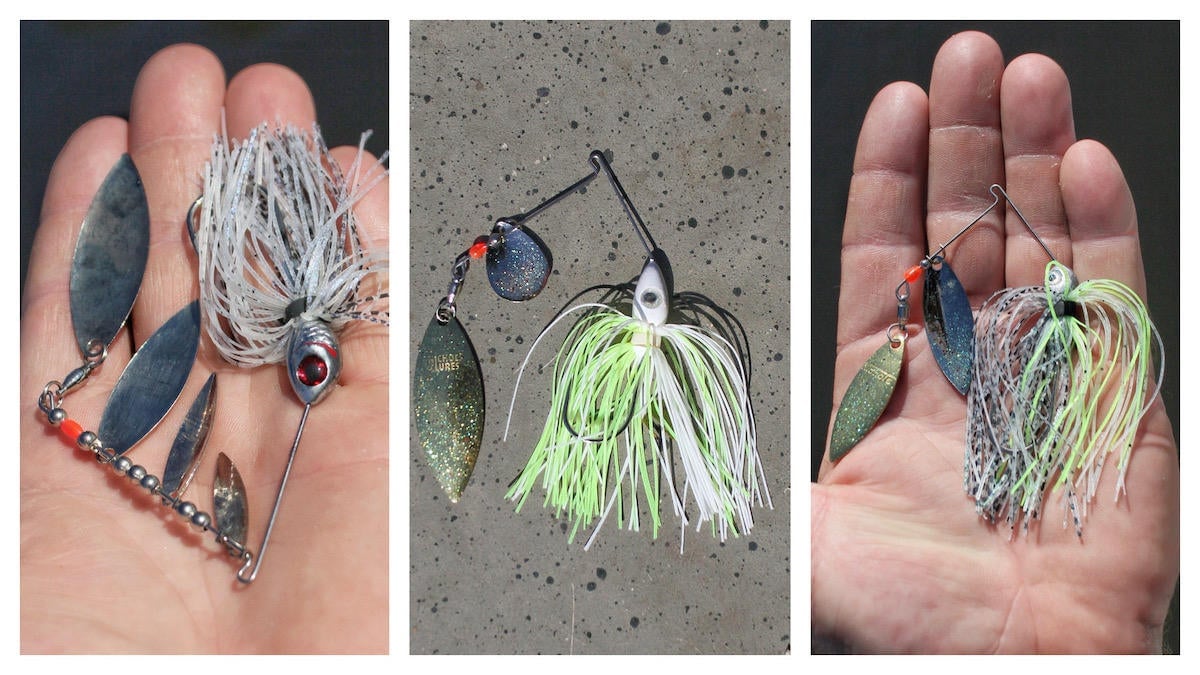 “Burning a spinnerbait” simply means to reel it fast, keeping the bait within a foot or two of the surface. Since willow leaf blades offer less resistance than Indiana or Colorado blades, they are best suited for this style of fishing. I’ll usually select a 1/2-ounce spinnerbait in a shad pattern with tandem willow leaf blades both in the 3- to 5-size range, obviously stepping down in size for the interior blade. I go with a 1/2-ounce instead of a 3/8-ounce because of the added range.
