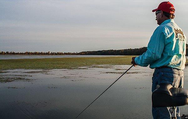 “Anytime I’m fishing cover with frogs, I’m always looking for a reason for them to be there,” Grigsby said. “Two of my favorite things to find are ditches and points. I idle around a lot, looking at my Lowrance to find ditches that allow big bass to easily migrate to and from deeper water. Grass points are great, too, because fish love to relate to irregularities in the grass.”