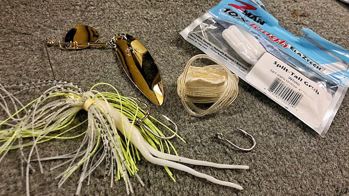 But over the last couple years, we’ve added a big 1/2-ounce willow leaf spinnerbait to the arsenal and started slow rolling it in slightly less than muddy situations. Any water with a decent amount of color to it will do. This spinnerbait is chartreuse with gold blades-a No. 4 Colorado and a No. 6 willow leaf.