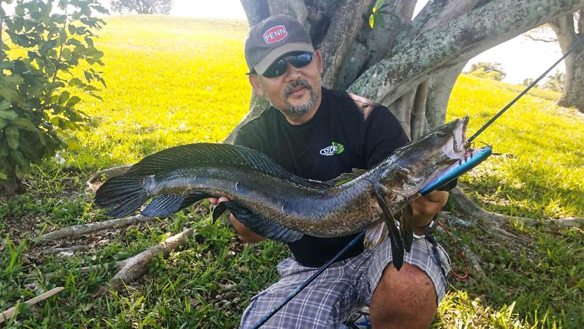 South Florida angler Alberto Knie often targets peacocks, snakeheads and clown knifefish, as opportunities arise. For optimal response, he ties his leader to a Tactical Anglers MicroPowerClip, which enables him to quickly switch from a slash bait, to a frog, to a live bait hook when presenting shiners to clowns.