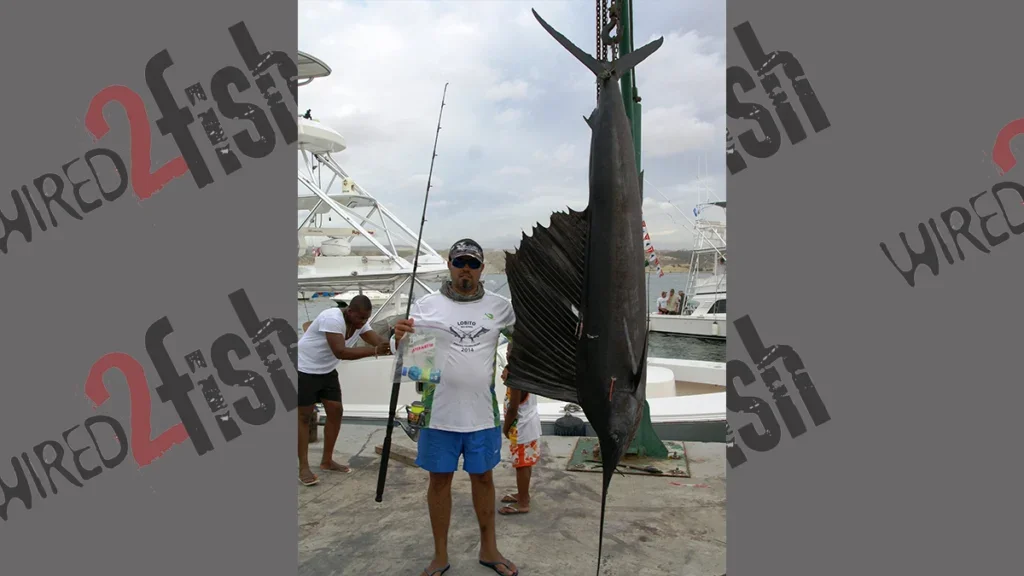 Found in all tropical and subtropical seas, sailfish favor coastal areas in water shallower than blue or white marlin. The large, high sail-like first dorsal makes it unmistakable, its bill clearly longer than the spearfishes. There is but one species; however, the IGFA keeps separate records for those caught in the Atlantic and Pacific/Indian oceans, with the latter averaging a larger size.