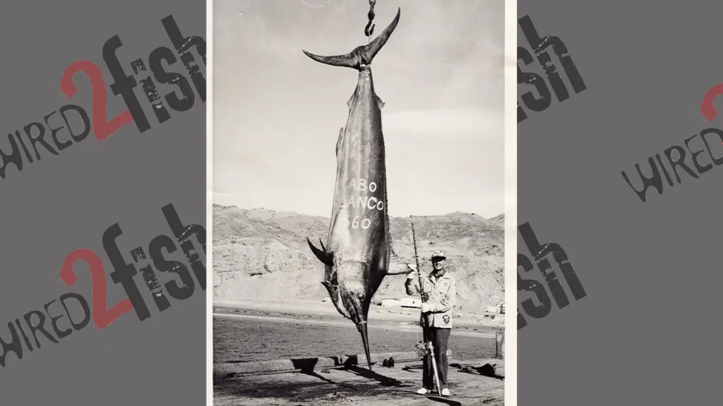 The truly extraordinary circumstances of this world-record catch are chronicled in an article entitled, “Cabo Blanco, The Rise and Fall of the Greatest Bluewater Big-Game Fishing the World Has Ever Known,” in the 2005 International Game Fish Association World Record Book that details the many world records set at Cabo Blanco in the 1950s. This catch was made far off the cape, the marlin clearing the water 49 times over nearly two hours.