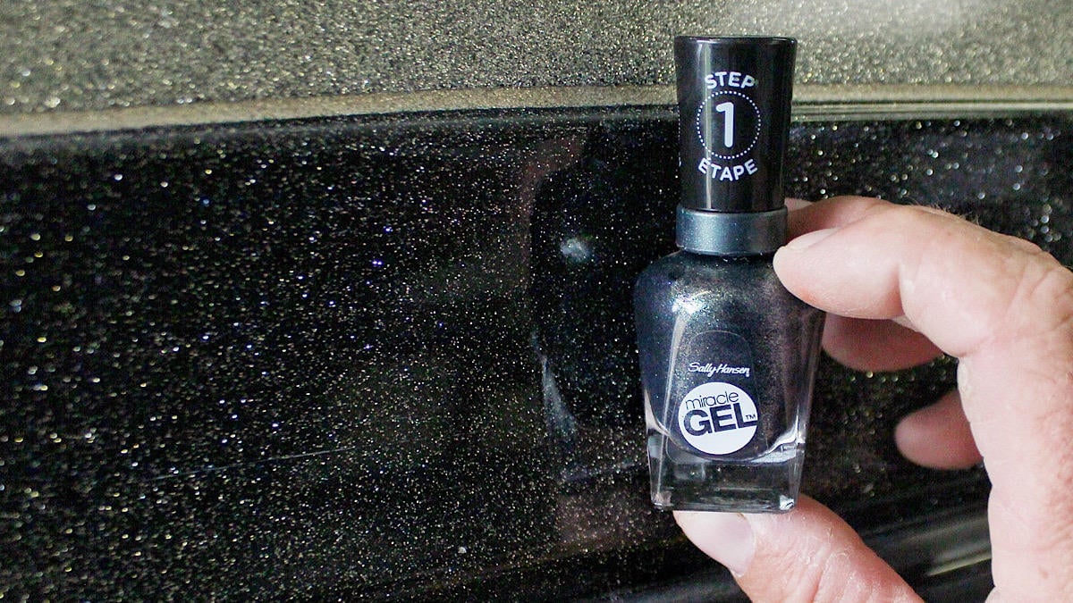 But you don’t have to let that fear control you. There’s actually a very cheap solution to this problem and obviously you know where I’m going with this, nail polish. For a small scratch in the gelcoat, a quick swash overtop of it with the perfect color nail polish will make it nearly untraceable. There are countless colors of nail polish out there now and a good portion of those have glitter in them that will blend extremely well with the metal flake in gel coats.