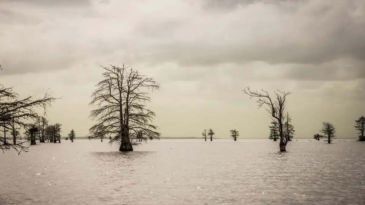 Another factor that plays into cypress tree fishing is submerged vegetation. Many of the trees on Santee Cooper have submerged grass that grows all around the tree. This grass comes up to anywhere from a few feet to a few inches beneath the surface, and it tends to limit your bait selection. Trees with vegetation tend to be located in protected areas such as coves or behind islands, and they often hold a decent population of fish.