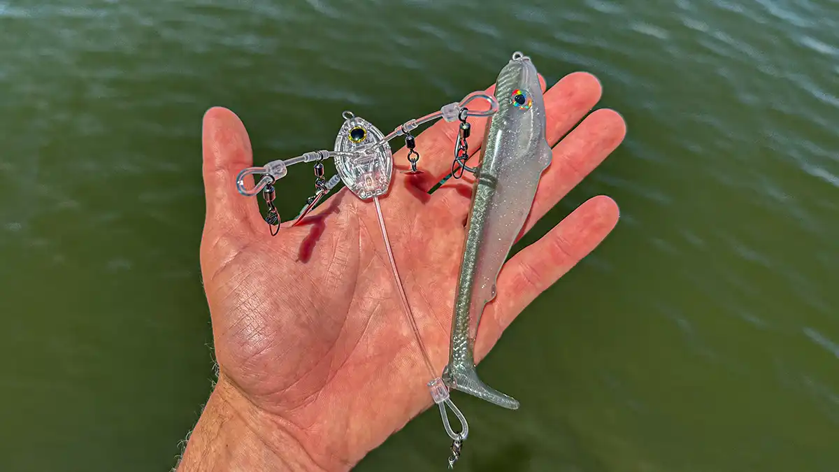 Another key to success when fishing tailraces is bait selection. I typically switch between a handful of baits when fishing tailraces based on depth and current. These include a big swimbait, Alabama rig, jig and spinnerbait. All four of these baits are extremely effective, however they’re each suited for their own specific scenario. I generally opt for the swimbait and Alabama rig when fishing offshore. Some of my favorites include the Scottsboro Tackle Co. Swimbait and the Stealth Lures Stealth Rig.
