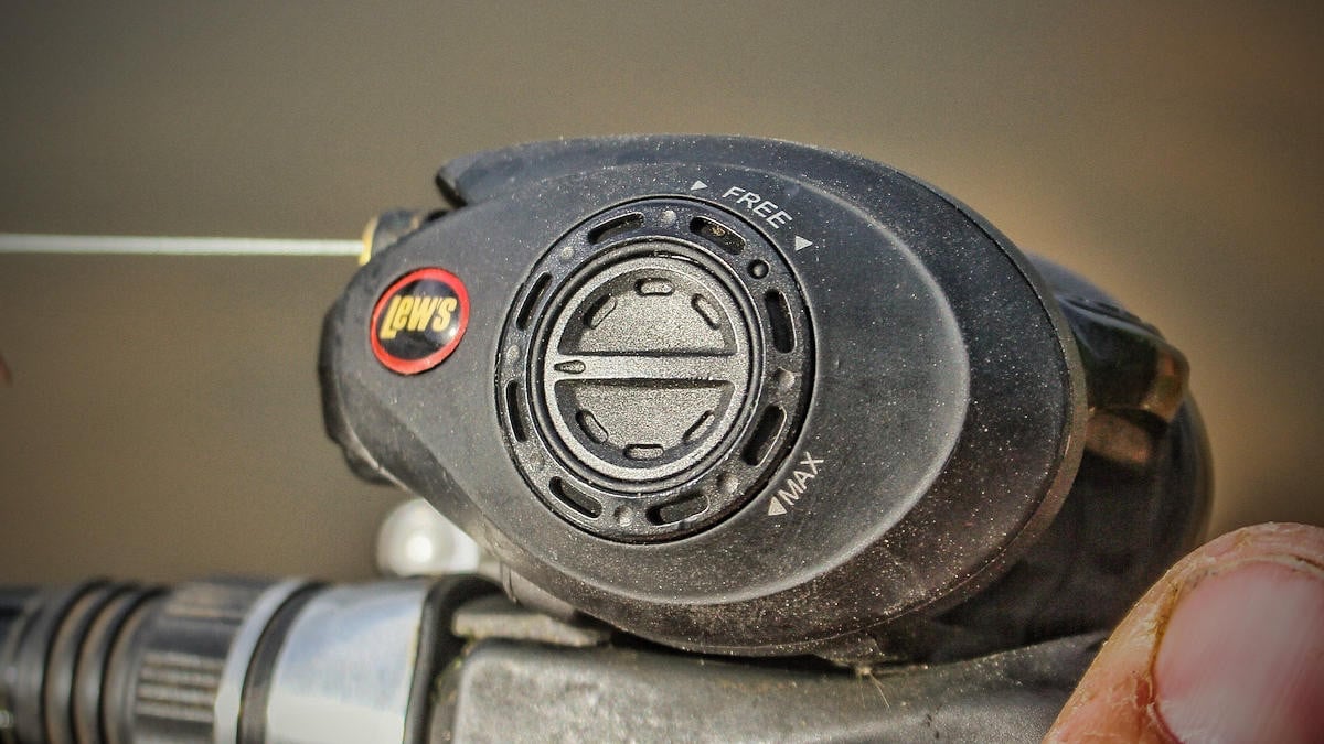 Again as with the spool tension knob and the brake system, the factory setting will have the drag as loose as possible. So I like to tighten mine all the way down and then, with the reel engaged, pull on the line just in front of the reel to see how much pressure it takes for the spool to start spinning. The desired pressure varies greatly depending on the presentation.