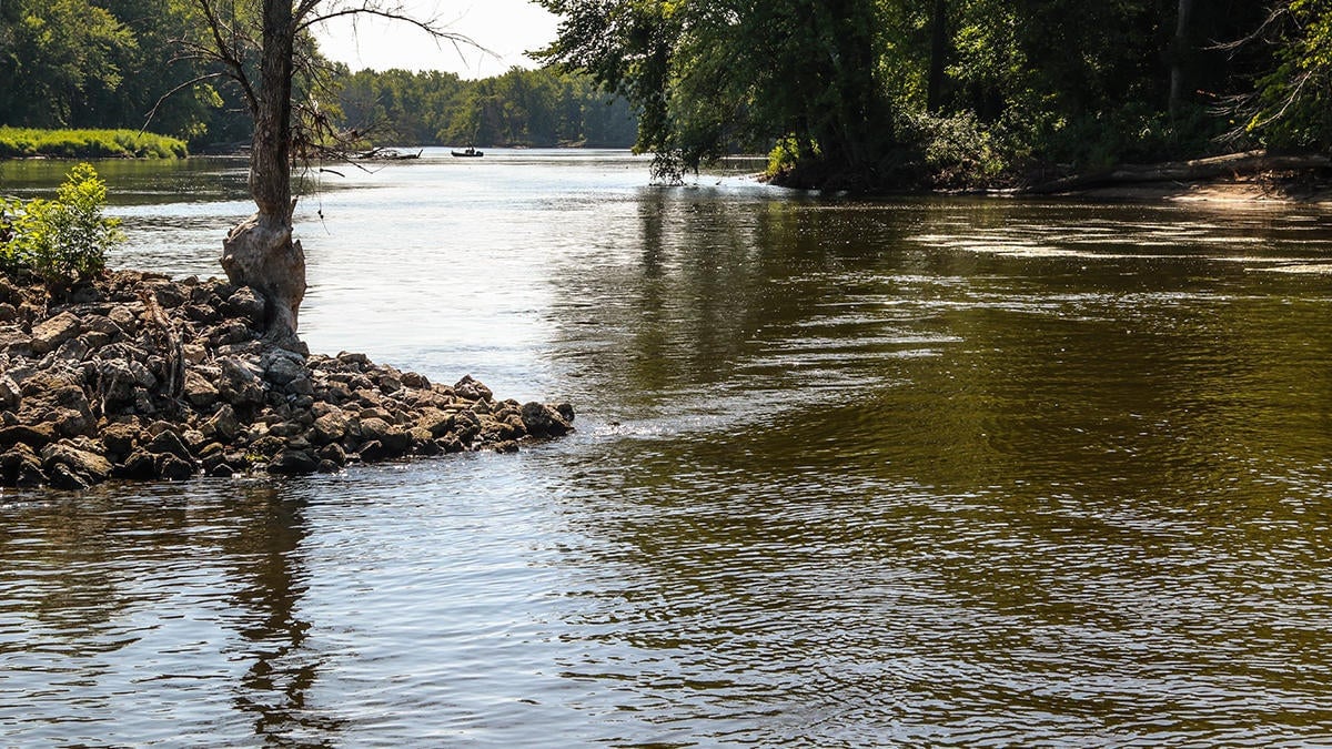 “The Carolina rig is best when you’re not going to hit the rocks themselves,” he explains. “In that current, you have to throw such a heavy weight that it’s easy to hang up. That Carolina rig is good for sand bars or little eddy pockets related to the wing dam.”