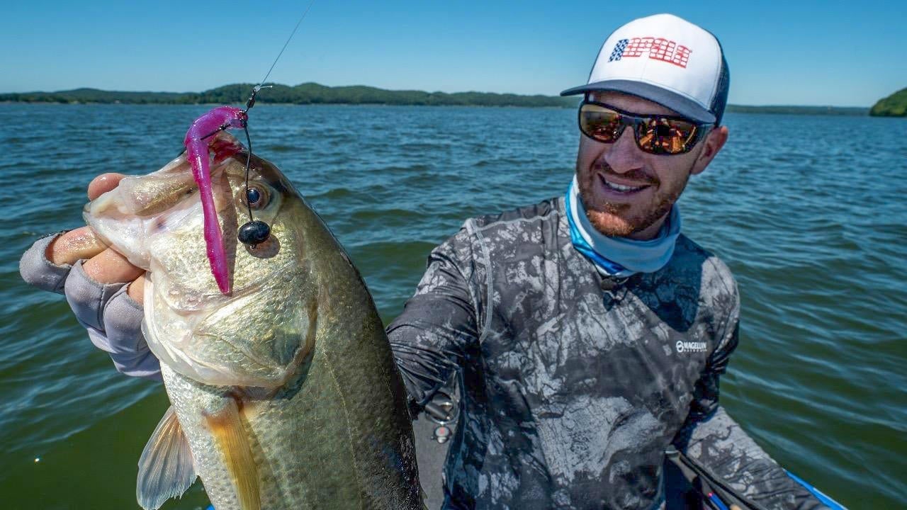 In a fashion similar to his recent Major League Fishing Bass Pro Tour win on the St. Lawrence River, Wheeler uses the VMC Tokyo Rig Finesse Neko to rocket a plastic worm to the bottom in deep water. Precision depth control allows you to put a bait directly in the face of the fish you’ve just marked. Catch a few, then start rifling through other proven tactics such as swimbaits and crankbaits to milk the school for extra bites