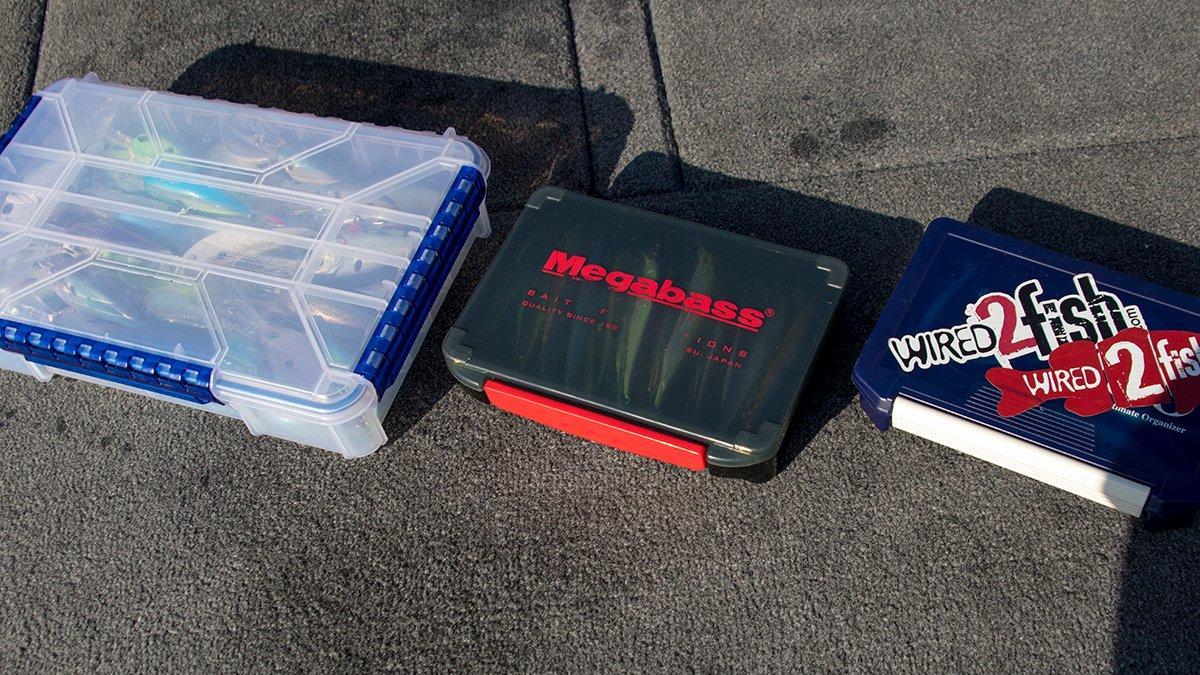 With the rubber band trick, I’ve found I can store a lot of baits in smaller boxes and they don’t get stuck together. I’ve also found for bigger baits, like say the oversized deep diving crankbaits like the Strike King 10XD, I can keep the baits from tangling up in bigger bulk boxes as well.
