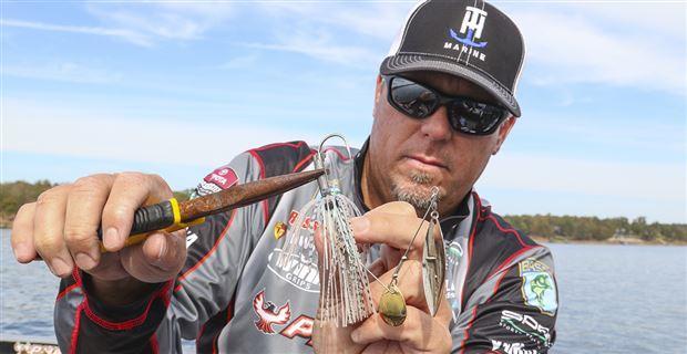 Bassmaster Elite pro Russ Lane keeps a good assortment of spinnerbaits handy, but sometimes all his variations of blade size, shape and color can still come up short. In many cases, modifying a small spinnerbait to fish for bass deeper gives him the perfect bait.