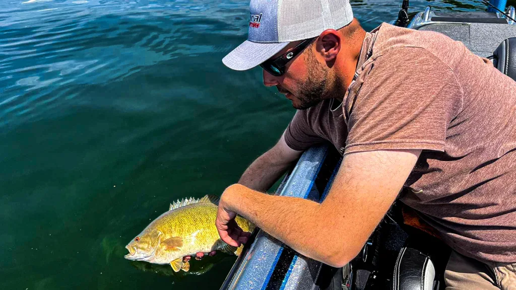 Generally, there’s two main directions on bait selection you can take. A horizontal approach or dragging the bottom. All of this depends on what shows on 2D and side scanning sonar when going over the transition zone. If I see fish sitting suspended around bait within the transition, then I’ll go with a horizontal bait choice. If there are fish glued to the bottom, especially in clear water, then I’ll bounce bottom.