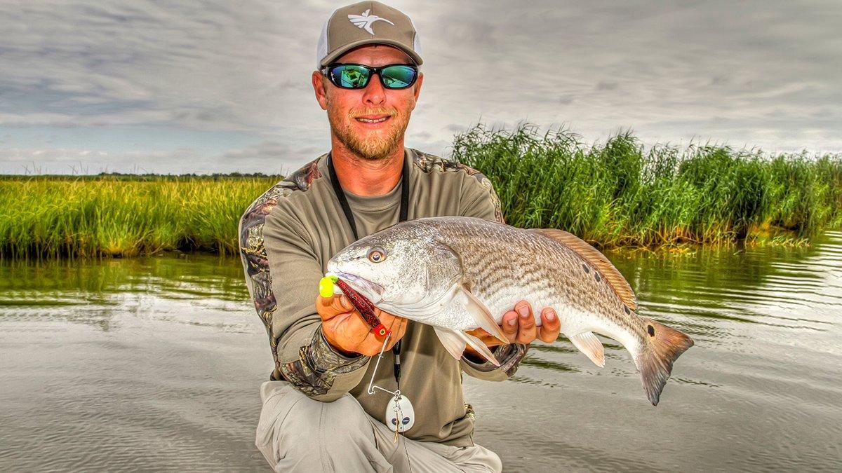 - Pockets — Modest as they may seem, those random little pockets in the grass or cane that seem just big enough for a single redfish will often hold a good one. Sometimes, they’re just relaxing in a defensable position, but when the tide’s washing forage past their position, you can bet these opportunists will be watching for the next belly-filler. As Obiol ran us down a crescent-shaped bank of low Roseau cane, I pointed to a particular little divot and said, “That’s just the kind of spot where I’d expect a redfish to be sitting.” Moments later, my spinnerbait met with a violent explosion that validated my point.
