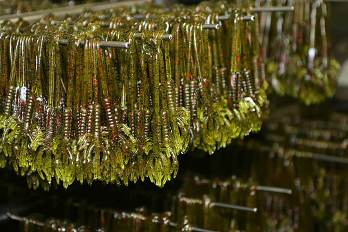 <p”>There are more than 30 stations that can inject plastic into the hundreds of molds Zoom has on hand, and each station gets assigned a certain bait and color or series of baits and colors depending on the orders received.