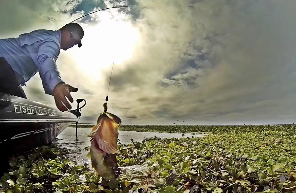 I’ve had a GoPro mounted on a pole many times and have gotten some awesome shots because of it. Something as simple as a broom stick in the boat with a GoPro mounted on it will allow you to stick a camera down into a ball of shad or a bed. You can get cool underwater shots of the cover you’re fishing around too and even shoot what looks like a little drone shot from within the boat. A telescoping pole like those used to change light bulbs is even better for this. Â