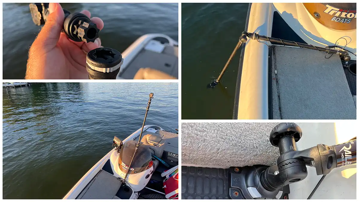 Lately, I’ve also been using a combination of RAILBLAZA mounts on my boat. I mounted one of their StarPorts to the deck of my boat and then I used combinations of their Camera Boom 600 R-Lock and other extension poles to either elevate my camera and position it in a unique spot high in the boat or hang it over the side or even down in the water to get underwater shots of bass and baits as they near the boat. These are some really cool products to play around with.Â