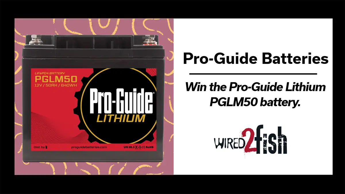 Wired2fish is proud to partner with Pro-Guide Batteries to give away its PGLM50 battery. This is a 12-volt LiFePO4 (Lithium Iron Phosphate) battery with a capacity of 50 Ah (amp hours) or 640 Wh (watt hours) that’s perfect for boat and kayak electronics.