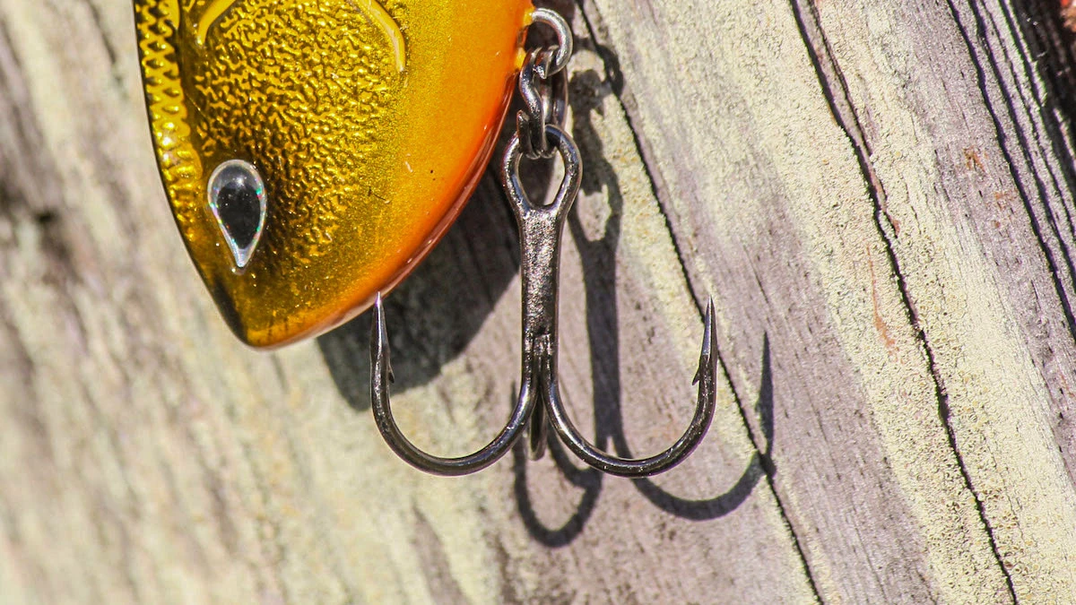 All of the these lipless crankbaits come outfitted with chemically sharpened VMC treble hooks. The 1/2-ounce bait comes with No. 4 trebles where the 3/4-ounce is paired with larger No. 2 hooks. These hooks have a round bend, which helps you stick any fish that inhales the lure and gives you the best chance of hooking fish that happen to simply swat at it instead.