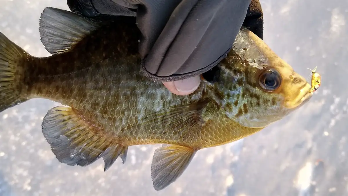 The twitch rate and cadence is unfortunately something you will have to play around with. Luckily with most guys using flasher units and more advanced fish finding technology, gauging the reaction that fish are having to what you are doing is much easier. My typical technique is to drop it down to where the fish are showing up on my flasher, stop it just above them and then twitch the rod lightly and constantly as I slowly raise the rod tip slowly away from the fish, and it works great. It’s not a bad idea to drop the fly slowly a foot or two at a time under the ice and twitch it as you go down and watch for the line to go slack. Sometimes we can’t see the slabs hugging the ice with our flashers.