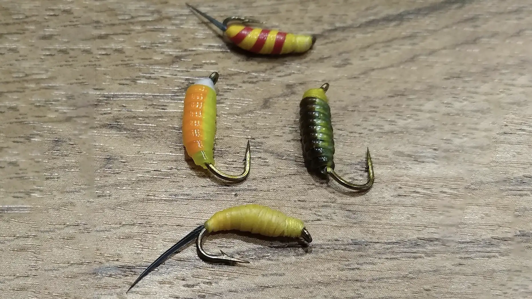 I was still clueless. Having no idea what he was talking about, I tried to get closer, just to get a glimpse. He eventually took pity on me and showed me the fly in question in the only two colors he used, orange over chartreuse and brown over green. However, out of respect for the guy who taught him, he would not tell me how to make them. He did, however, tell me how to fish them once I figured it out. Needless to say, this became my obsession, and although it took me a great deal of time to get it just right, I never looked back, and the art of fooling fish through the ice and in open water without bait has become my passion ever since. I saw the fisherman years later, and I told him how I created these, and although mine looked like his, how I arrived at the answer was way off.