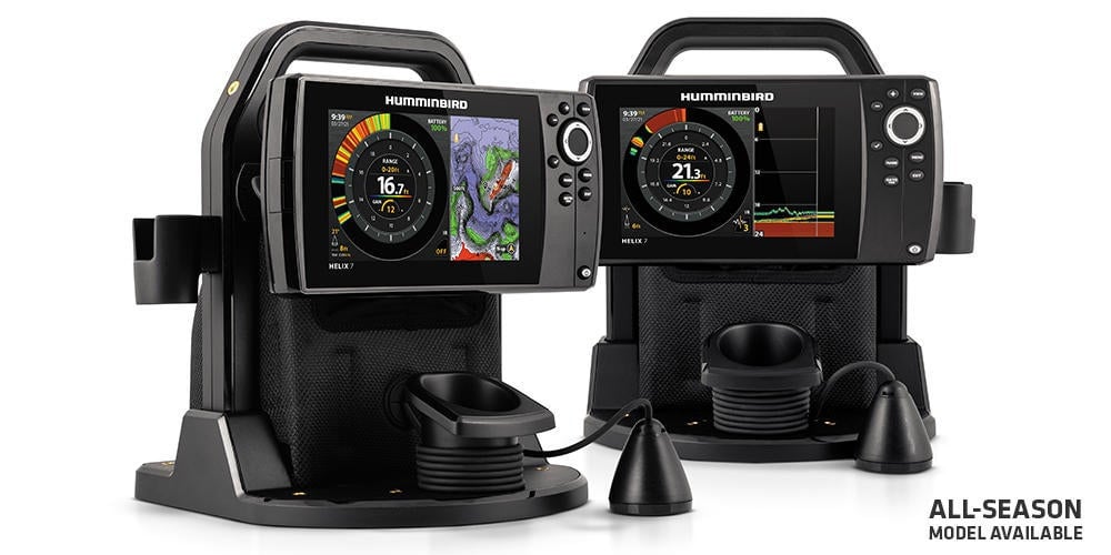 The new ICE HELIX 7 G4 models provide anglers a popular screen size with updated and intuitive Humminbird technology including the new premium ice shuttle, 15Ah lithium battery and a higher resolution HD display (1024 x 600).