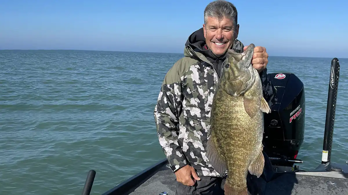 We got reports early this afternoon, Nov. 3, 2022, of a 10-pound smallmouth bass being caught in Ontario on Lake Erie. Ross Robertson called us and confirmed his friend’s father Gregg Gallagher caught a smallmouth that was weighed officially with DNR representatives on hand at 10.15 pounds. It will surely be the new Lake Erie record. We just have the preliminary details right now and will be getting the more details, photos and the full story hopefully soon.