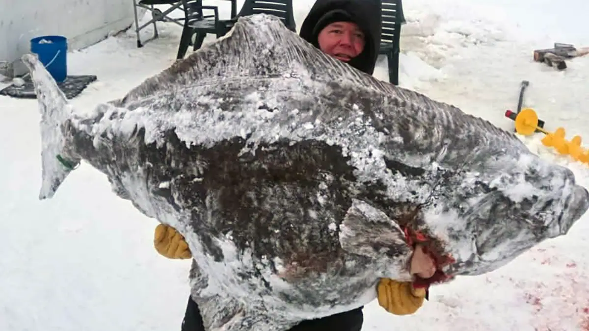 An angler in Canada landed a massive “barn door” — a 244-pound halibut — while ice fishing in early February, all in the name of scientific research. The catch was a regional record. Alain Hamel, who lives in the eastern province of Quebec, caught the big halibut in the Saguenay Fjord in 600 feet of water. The fjord drains into the Saint Lawrence Seaway.