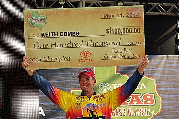 The world championship of bass fishing, the Toyota Texas Bass Classic was decided by a world record-breaking performance from two-time winner and defending TTBC Champion Keith Combs of Huntington, Texas. Combs broke the tour-level world record today with a amassing 110 pounds following three days of competition at historic Lake Fork. The previous record for a 5-bass-limit was set in 2000 at Clear Lake, California by Byron Velvick with 83 pounds, 5 ounces. Combs’ total over three days broke the record by a staggering 26 pounds, 11 ounces.