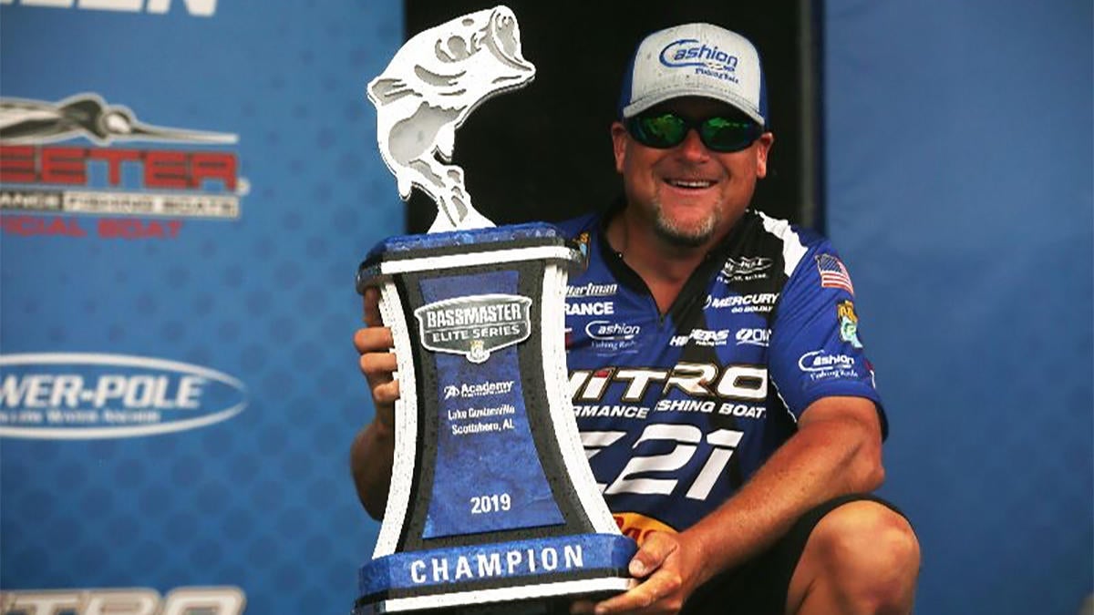 The New York native, who now lives in Arkansas, caught five bass Monday that weighed 23 pounds, 15 ounces and claimed his first Elite Series victory with a four-day total of 79-10 at the Academy Sports + Outdoors Bassmaster Elite at Lake Guntersville.