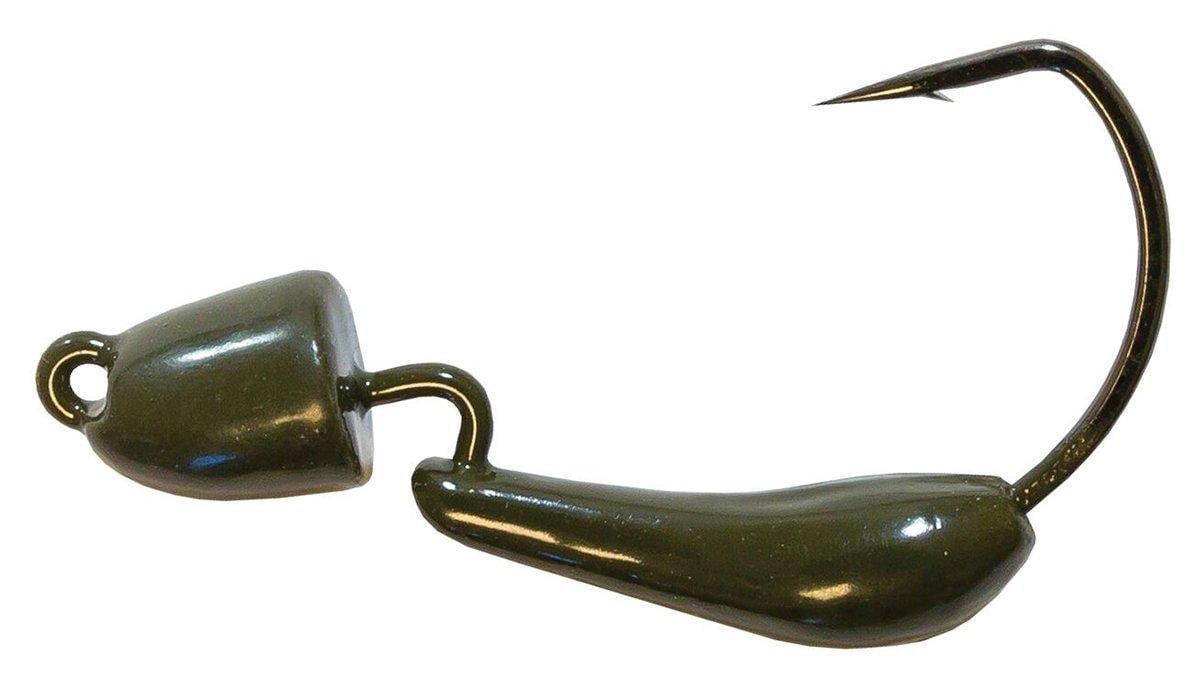 Bullet shaped head and recessed eye for snag resistance, built on custom size 1 VMC® EWG heavy duty jig hook, molded lead keeper prevents baits from slipping.
