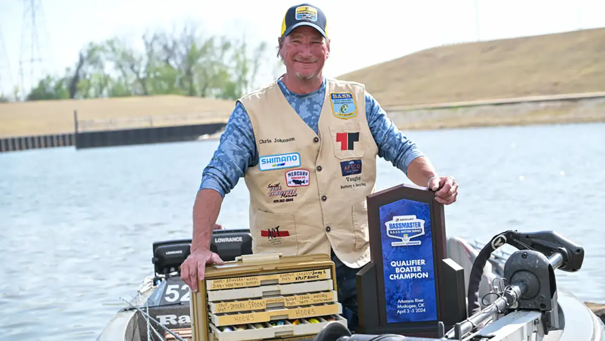 MUSKOGEE, Okla. — Enduring a painfully slow day that starkly contrasted the previous activity levels, Chris Johnson’s steadfast belief in his area allowed him to tally a three-day total of 51 pounds, 3 ounces and claim the wire-to-wire win at the Mercury B.A.S.S. Nation Qualifier at the Arkansas River presented by Lowrance.