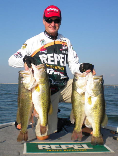 After five days of fishing at Falcon, fishing some stuff a bulldozer would have a tough time getting through, he used one — yes that is right — one hook. It was a Kumho 5/0 Flipping Hook. The results are staggering. His five biggest bass on his first day weighed 42.15, Big fish was 9.3 pounds, small fish was 8.4. His big fish for the week was more than 11 pounds. For the week, they caught 50 fish weighing more than 5 pounds — WOW!