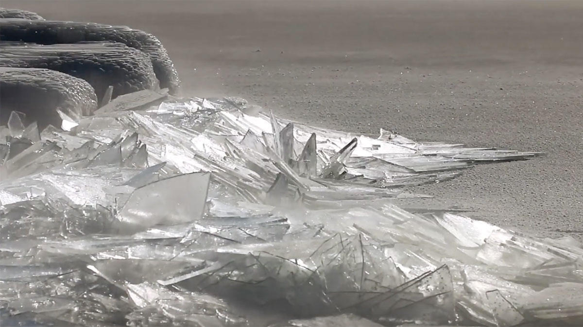 “While shooting in Canal Park, I noticed the ice had pulled away from shore and felt the breeze at my back. I anticipated there would be some ice stacking as the massive sheet of ice met the shorelines, so I headed to Brighton Beach. The big lake did not disappoint! As the water opened up, the sea smoke was whisked across the surface by the breeze. The sparkles visible in some segments were from the sun gilding the frost flowers that had formed on top of the new ice overnight — icing on the cake! (Turn up your volume to hear the plates of ice stacking.) I am at awe and mesmerized by ice stacking (and waves), and spent hours immersed in the sights and sounds of one of my favorite winter occurrences (despite the subzero temps and frigid breeze). I hope you enjoy this glimpse into an incredible experience along the shores of Gitche Gumee! ~~Dawn