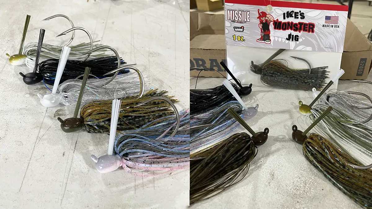 Missile Jigs is dropping a new jig that is specially made for trophy bass hunters called Ike’s Monster Jig. Based on a custom 10/0 VMC 60 degree heavy duty jig hook with the super slick PTFE coating, the all-purpose design of the Monster Jig head allows it to excel in swimming or bottom bouncing applications. Think of Ike’s Monster Jig as the big swimbait of jigs.
