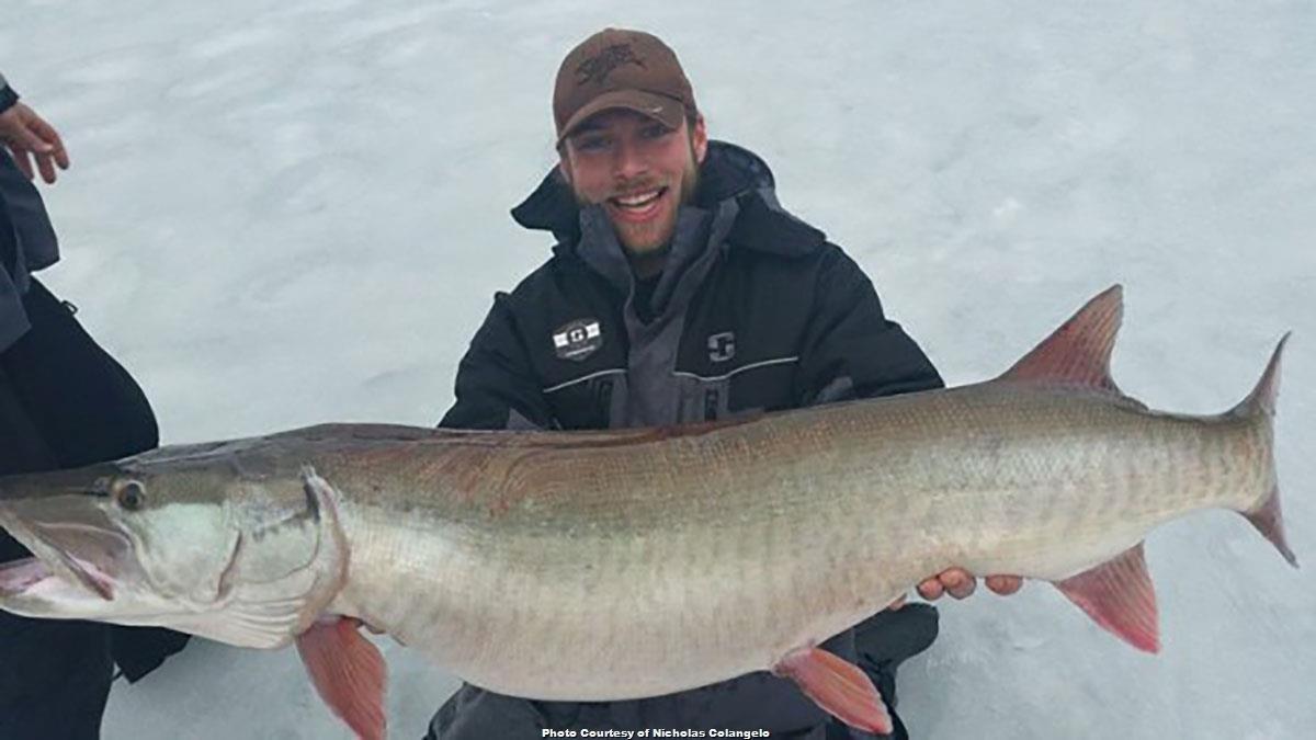 According to CBS Pittsburgh, a giant musky was caught through the ice this weekend in Northwest Pennsylvania by best friends Nicholas Colangelo and Luke Wholey. They didn’t weigh the fish, but it did measure 53 inches and could barely squeeze through the 10-inch hole in the ice.
