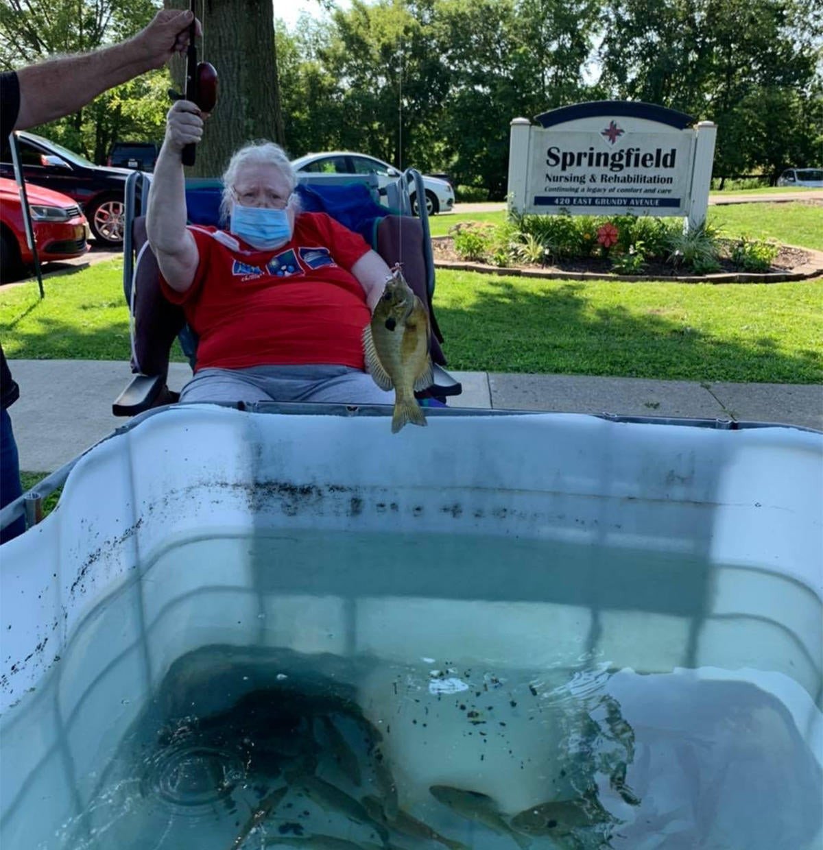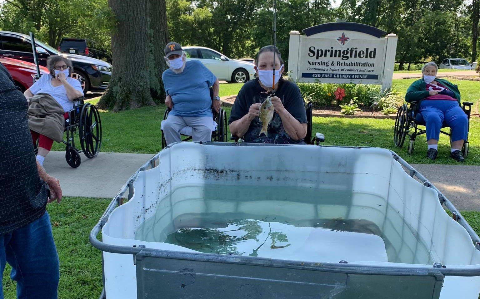 We ran across a Facebook post yesterday from Springfield Nursing and Rehab Center in Springfield, Kentucky that really touched our hearts. The staff performed a wonderful gesture by bringing fishing to the residents. Large tanks stocked with some huge sunfish were set up on the grounds of the facility and residents were supplied fishing rods. The residents were able to get outside and catch some fish while remaining safe and under the supervision of medical professionals.