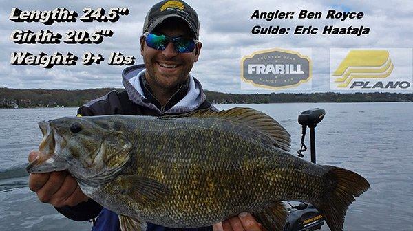 But fishing guide Eric Haataja and was fishing with Ben Royce on a small lake in Southern Wisconsin when they caught and landed a 9-pound smallmouth on a Berkley Havoc Sick Fish swimbait. The Wisconsin state record is 9 pounds, 1 ounce and was caught in 1950. This fish could certainly have challenged for the Wisconsin state record, but neither angler wanted to kill a trophy and definitely wanted it to breed and produce more giant smallmouths in the future. Kudos to the Frabill Plano pros on their conservation mindedness in the wake of having a potential state record on the line.