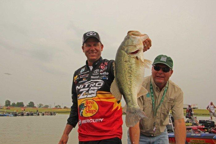 He also noted that 10″ worms, ¾ ounce football jigs, and magnum-sized topwater lures are all in play this weekend.