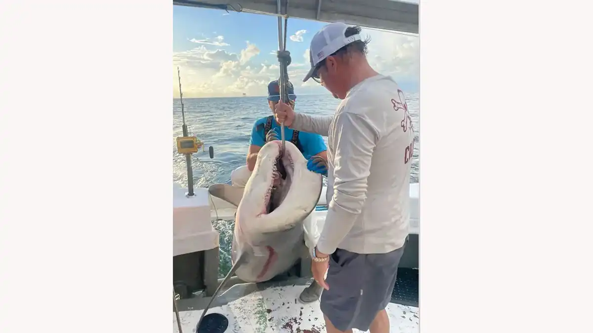 The crew used a winch, typically used in commercial fishing, to haul in the shark. Lyons added that the combination of angler skill, captain expertise, and patience was key.