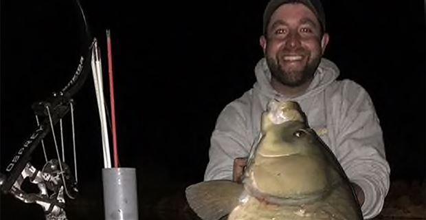 While bowfishing for carp and other non-gamefish in a coal strip mine pit in Houston County, Missouri, Morris and his friends noticed an enormous fish cruising towards their highly modified, illuminated fishing boat. Each of the bowfishermen took a shot but were unable to connect, but just when they thought they missed their chance, their luck turned around.