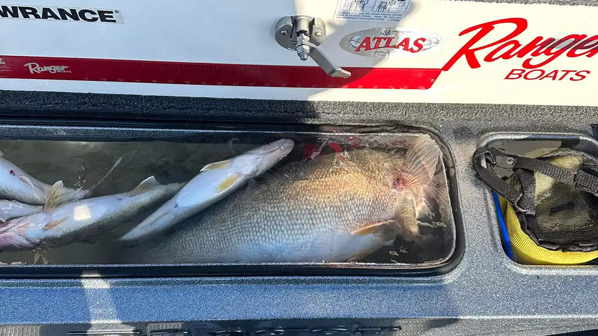 Angler Aaron Schuck of South Dakota fishes a lot for walleyes and appears to have caught the new South Dakota State Record Walleye out of the Lake Oahe while pulling a WNC Reaper crankbait Friday afternoon, Oct. 27, 2023. He weighed the fish on the certified scales at Oahe Sunset Lodge and Steakhouse and his information was verified and taken by South Dakota Game Fish and Parks Department officers. He has filled out all the necessary paperwork and submitted and GFP is in the act of processing the information now.