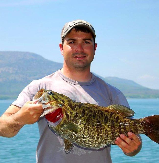 NewsOk.com reported Saturday that the state record for smallmouth bass had been broken on Lake Lawtonka this weekend. We confirmed with the angler Ryan Wasser of Pocasset, Okla., that his 8 pound, 7 ounce bass had been certified as the record and was taken to the nearby Bass Pro Shops to hold the and keep it alive for all the public to see the record fish. The bass was caught on a shaky head jighead and finesse worm. It measured 23 1/8 inches long and its girth was 18 inches.